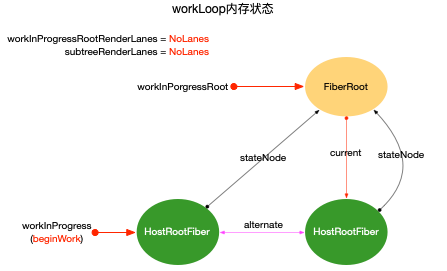 workInProgress指针指向父节点fiber(HostRootFiber)