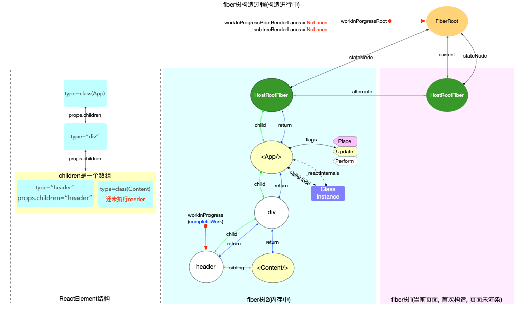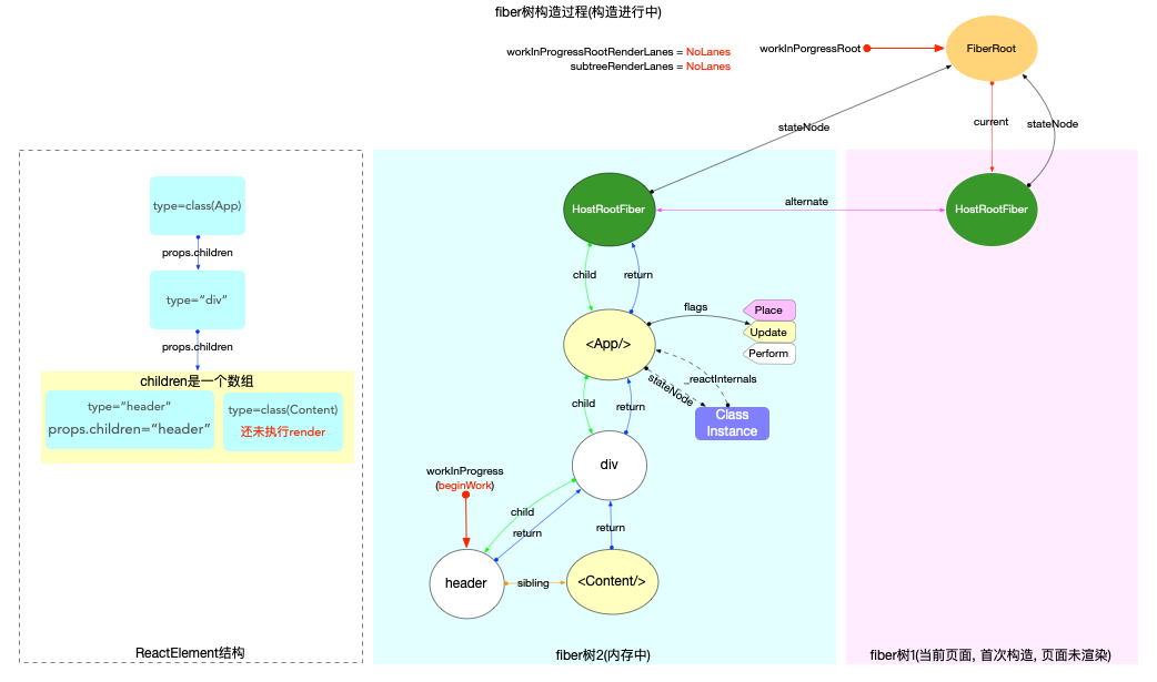 workInProgress指针指向fiber(<Content/>)节点.执行过程: 这是一个