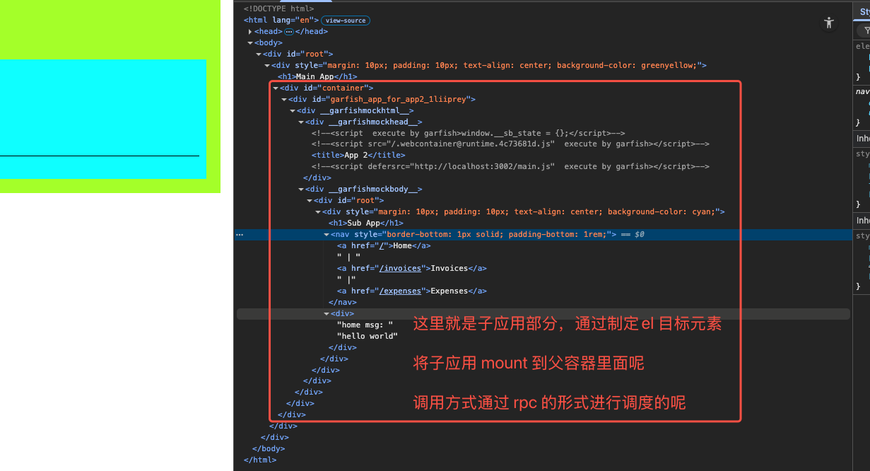 这是 garfish 微前端的主应用 main app 呐,主要负责的事情是进行注册子应用并且运行呐