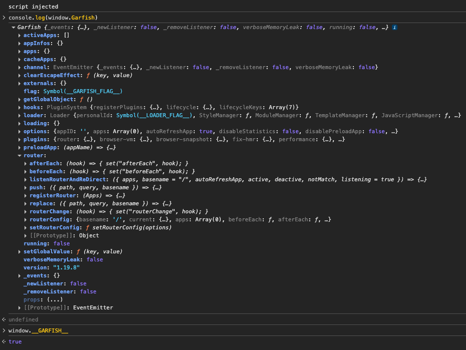 app.mounted ? app.show() : await app.mount();全局变量:window.Garfish 和 window.__Garfish__